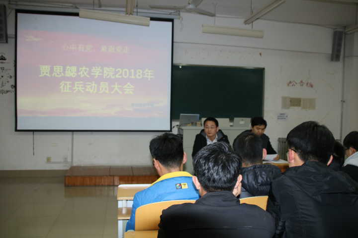 为积极响应国家大学生征兵工作的号召,巩固国防建设,不断为军队注入新鲜血液,2018年4月13日,437ccm必赢国际于教学楼208室举办2018年度征兵宣传动员大会,农学院李建永副书记、刘建伟老师及各年级100多名男同学参加会议。