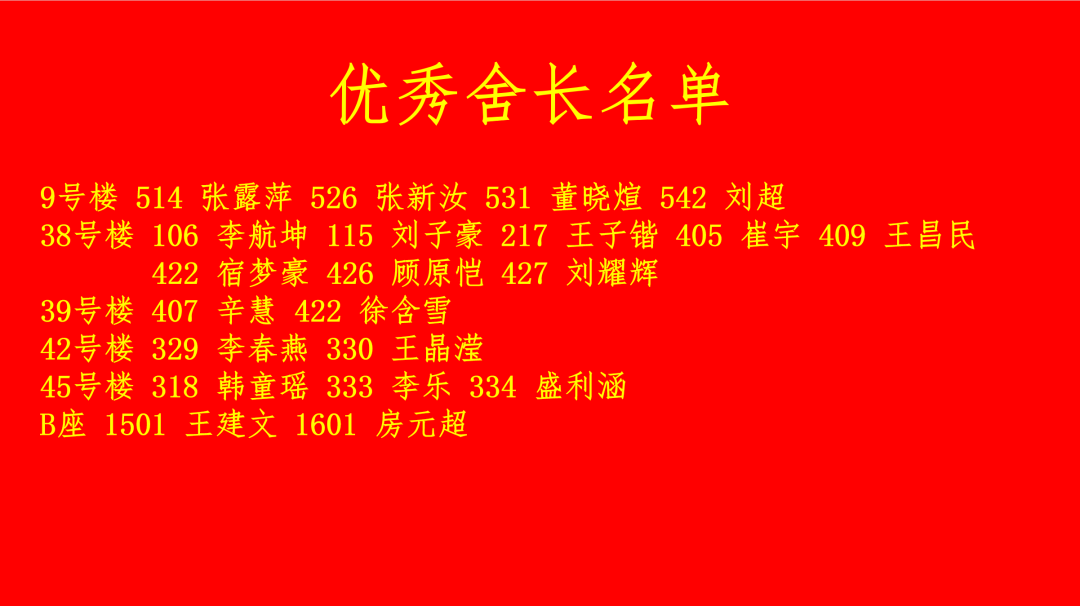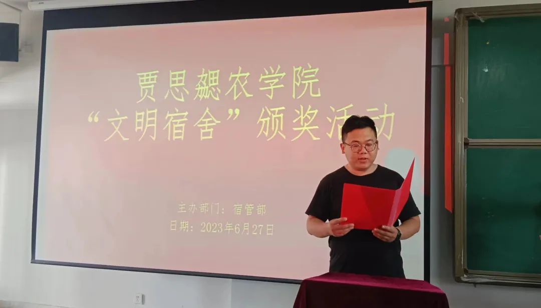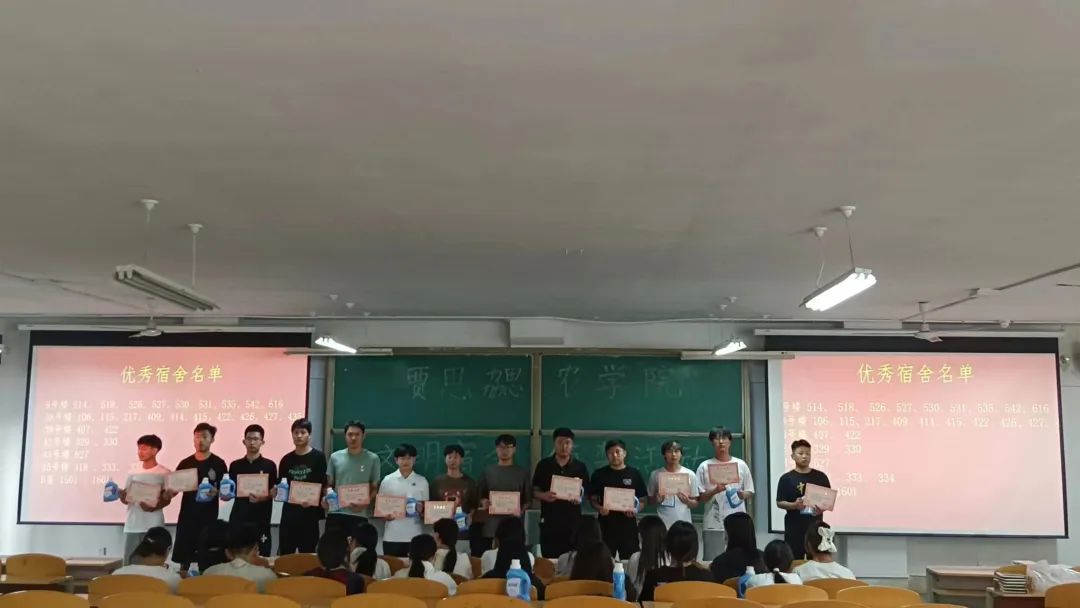 活动首先由由葛树喆老师宣读《437ccm必赢国际文明宿舍评比标准》,王倩倩老师、王淑芹老师宣读文明宿舍名单、优秀舍长名单。本着公平公正公开的原则,最终评选出29个优秀宿舍、21位优秀舍长,由葛树喆老师、王倩倩老师为文明宿舍获奖者颁奖;刘建伟书记、王淑芹老师为优秀舍长获奖者颁奖。