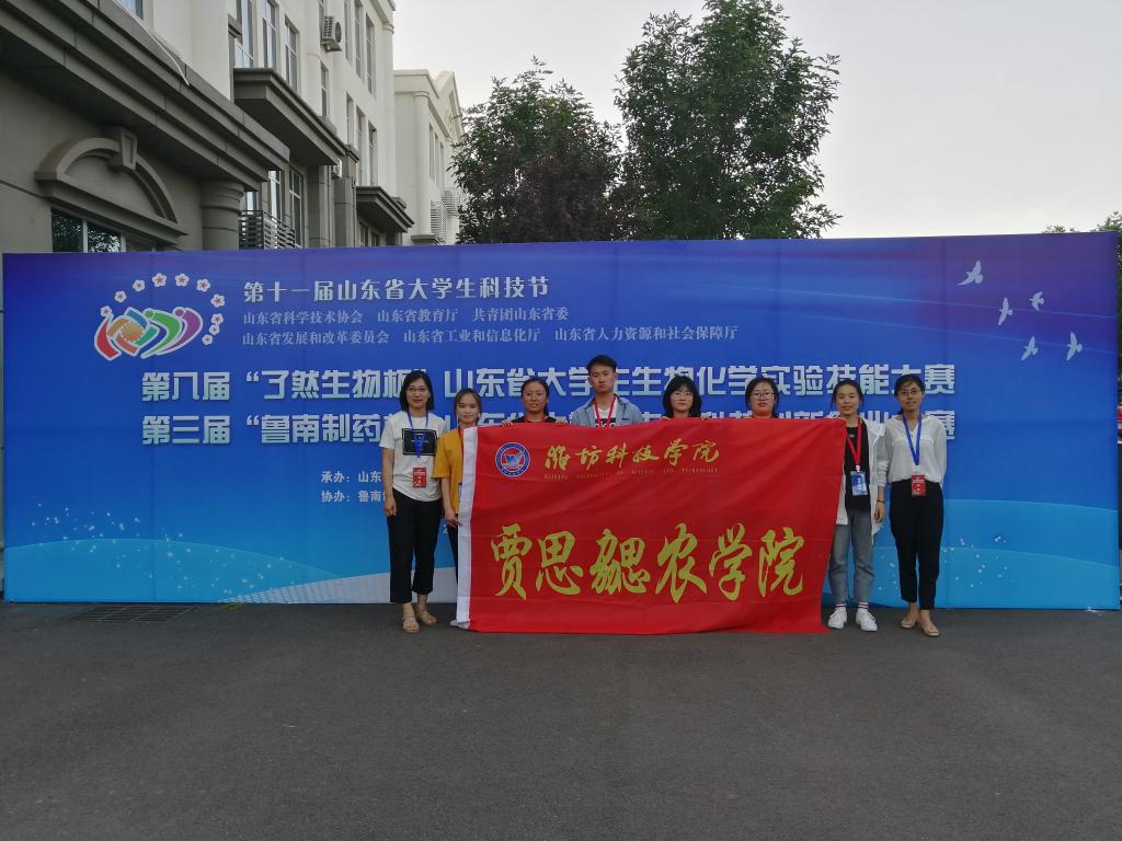 25月31日-6月2日,第八届“了然生物杯”山东省大学生生物化学实验技能大赛在潍坊医学院举行。437ccm必赢国际六名同学喜获佳绩,其中生物技术专业李景秀同学获得一等奖、尹梦莹、孟慧聪、赵守臻、王旭旭四位同学获二等奖、李娜同学获三等奖。